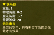 虽然铁马铠是基础款,但能提供0-2的物理防御和1-2的魔法防御,是新手阶段必备道具!