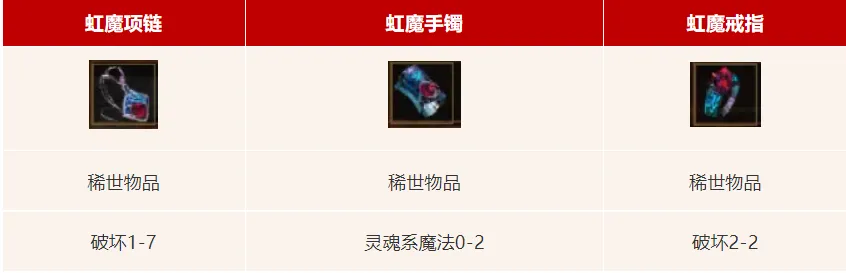 首先,众所周知虹魔套一共分为3件,分别为虹魔项链、虹魔手镯和虹魔戒指,击杀赤月山谷怪物可概率获得,佩戴套装效果为吸血+5%~